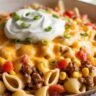 - Layer and Top: Pour the mixture into your prepared baking dish. Sprinkle the shredded cheddar cheese evenly over the top.